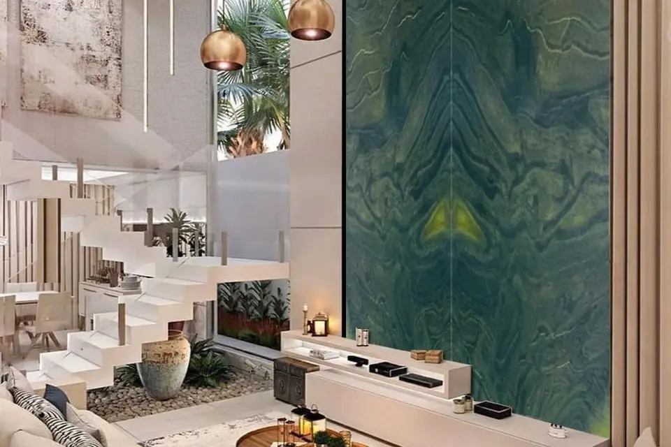 Serpentinus гармонійно вписується в сучасні та класичні інтер’єри, підкреслюючи природність матеріалів і додаючи приміщенню індивідуальності. Завдяки своїй міцності та стійкості до механічних пошкоджень, вологи та температурних коливань, цей граніт є надійним рішенням для активного використання. Унікальний малюнок каменю робить кожну поверхню неповторною, підкреслюючи преміальний характер проєкту.