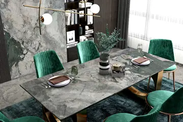 Мармур FOUR SEASON GREY відзначається збалансованою сірою палітрою з м’якими природними переходами відтінків і делікатним візерунком. Така текстура додає інтер’єру глибини, підкреслює архітектуру простору та створює відчуття стабільності й витонченості.