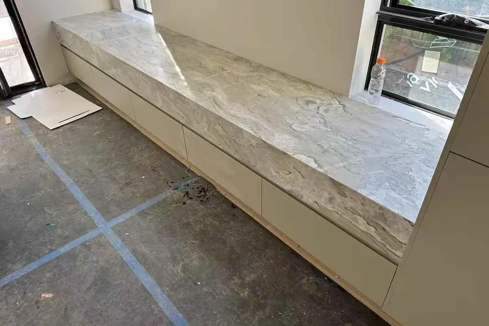 У проєктах цей камінь виступає як базовий або акцентний елемент: підлоги виглядають світлими та візуально розширюють простір, стільниці та столи додають інтер’єру легкості, а стінові панелі створюють чисті, сучасні композиції. Він ідеально поєднується з деревом, металом і текстилем, підкреслюючи природність матеріалів.