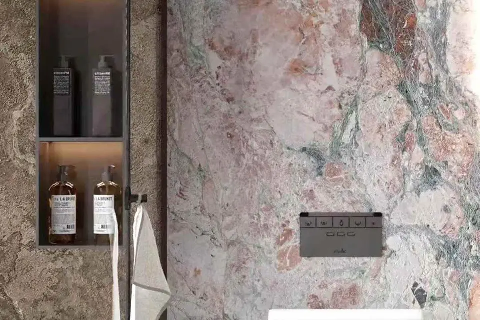 Проєкт із використанням мармуру Rin — це втілення стриманої елегантності та сучасної чистоти форм. Світла основа каменю з делікатними прожилками створює відчуття легкості, простору та гармонії, наповнюючи інтер’єр природним світлом. Такий матеріал ідеально підходить для облицювання підлоги та стін, виготовлення стільниць, ванних кімнат і декоративних елементів, формуючи спокійний і збалансований простір.