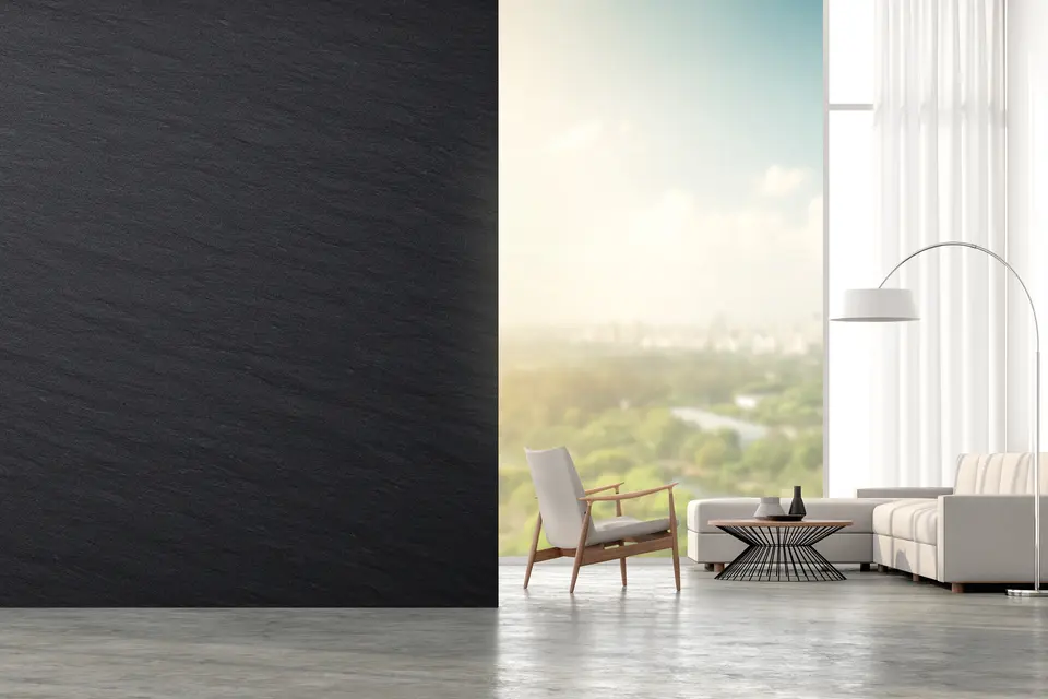 Використання великоформатних плит дозволяє створювати мінімальну кількість стиків і досягати ефекту цілісної поверхні. Панелі BLACK VERMONT чудово підходять для оформлення віталень, холів, камінних зон і сучасних комерційних просторів.